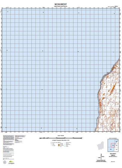 The WA Topo 50 series covers selected state wide areas at 1:50,000 scale where the level of feature density requires 1:50,000 scale mapping. Each sheet covers an approximate area of 15' longitude and 15' latitude which corresponds to approximately 25km by 25km at 10-20 metre contour intervals.
