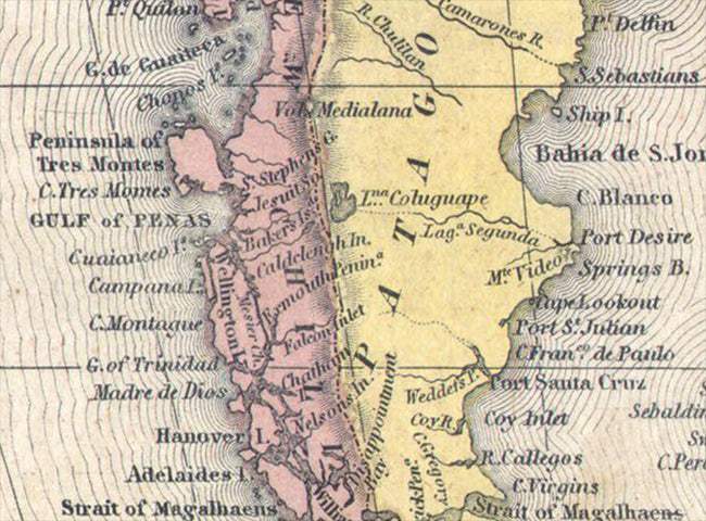 This is a really old and really cool historical map of South America from the year 1850.