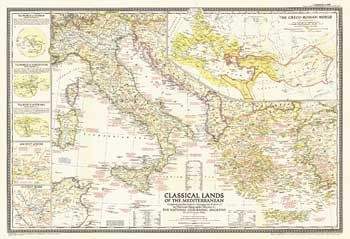 Read MoreFollowing World War II, Greece endured a bitter civil war that ended a couple months before this map was published in December 1949. The Classical Lands of the Mediterranean map celebrates the magnificent history of the Greek, Roman, and Phoenician civilizations with informative inset maps and an abundance of notes about historical and mythological sites.