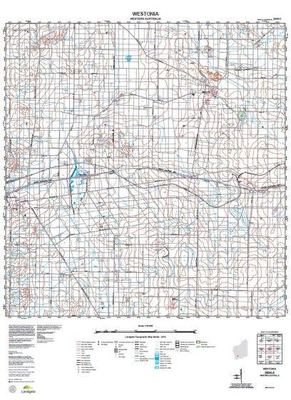 The WA Topo 50 series covers selected state wide areas at 1:50,000 scale where the level of feature density requires 1:50,000 scale mapping. Each sheet covers an approximate area of 15' longitude and 15' latitude which corresponds to approximately 25km by 25km at 10-20 metre contour intervals.