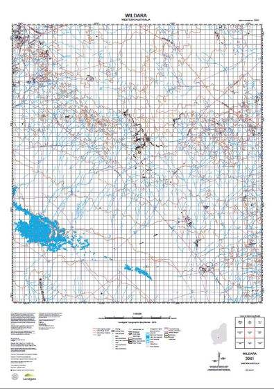 The WA Topo 100 series covers selected state wide areas at 1:100,000 scale where the level of feature density requires 1:100,000 scale mapping. Each sheet covers an approximate area of 30' longitude and 30' latitude which corresponds to approximately 50km by 50km at 20 metre contour intervals.