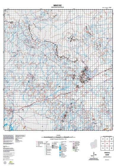 The WA Topo 100 series covers selected state wide areas at 1:100,000 scale where the level of feature density requires 1:100,000 scale mapping. Each sheet covers an approximate area of 30' longitude and 30' latitude which corresponds to approximately 50km by 50km at 20 metre contour intervals.