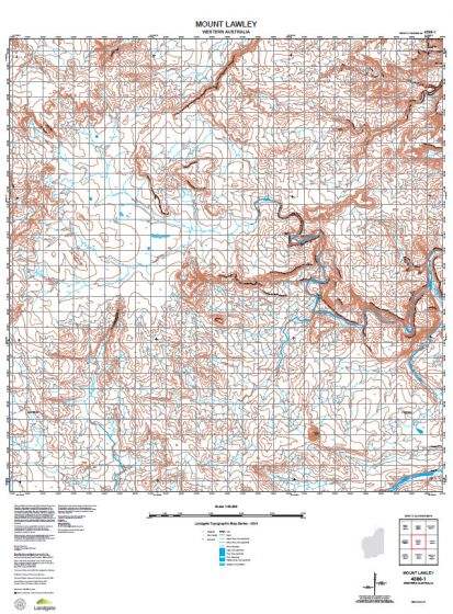 The WA Topo 50 series covers selected state wide areas at 1:50,000 scale where the level of feature density requires 1:50,000 scale mapping. Each sheet covers an approximate area of 15' longitude and 15' latitude which corresponds to approximately 25km by 25km at 10-20 metre contour intervals.