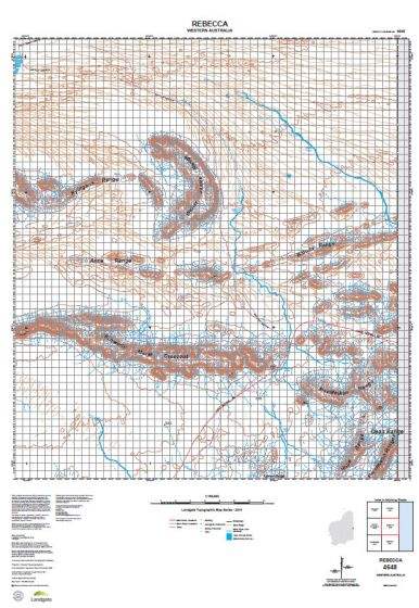 The WA Topo 100 series covers selected state wide areas at 1:100,000 scale where the level of feature density requires 1:100,000 scale mapping. Each sheet covers an approximate area of 30' longitude and 30' latitude which corresponds to approximately 50km by 50km at 20 metre contour intervals.