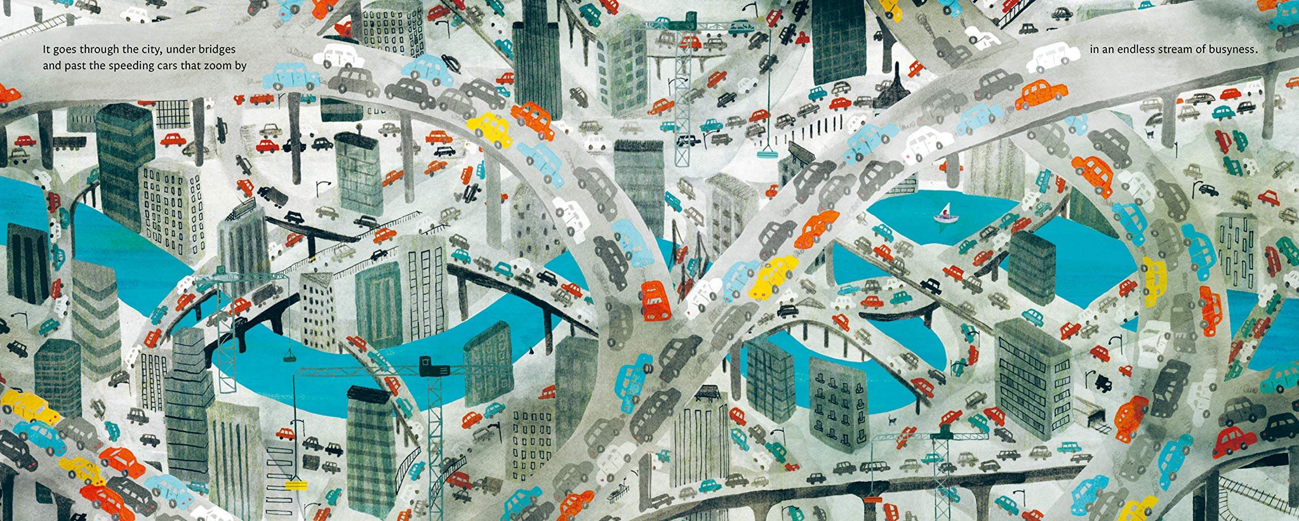 So begins an imaginary journey from the city to the sea. From factories to farmlands, freeways to forest, each new landscape is explored through stunning illustrations and poetic text from this award-winning picture-book creator.