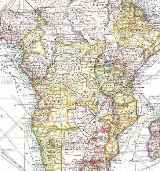 A time when the only way to get to far off places like Abyssinia, the Congo State, and Bechuanaland Protectorate was to take a long sea voyage, then travel many miles by rail. Artistic cartography and painstaking detail make this a map for any collector.