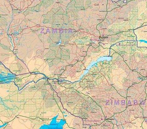 On the reverse, is a map of Central Africa with Zambia, Zimbabwe, Malawi, northern Mozambique and the Okavango Delta, and a piece of the Democratic Republic of Congo. Main and secondary roads are indicated.