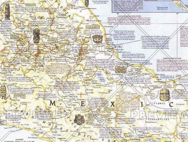 Archeological Map of Middle America (1968) Wall Map by National Geographic