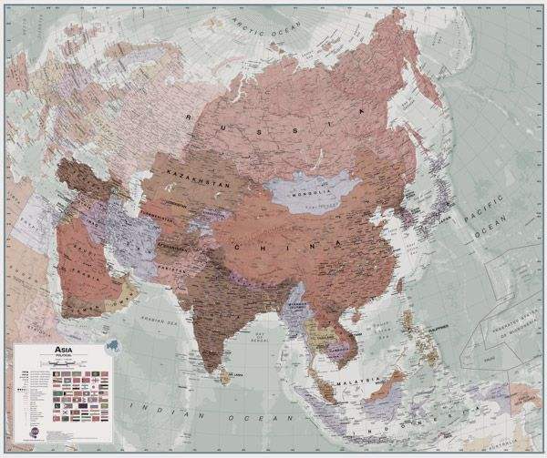 Read MoreA splendid premium wall map of Asia in muted tones. Maps International's executive wall map of Asia shows all countries from Turkey in the West to Japan in the East, down to Indonesia in the South of Asia. The largest and most populated continent, Asia has a lot to fit onto a map!