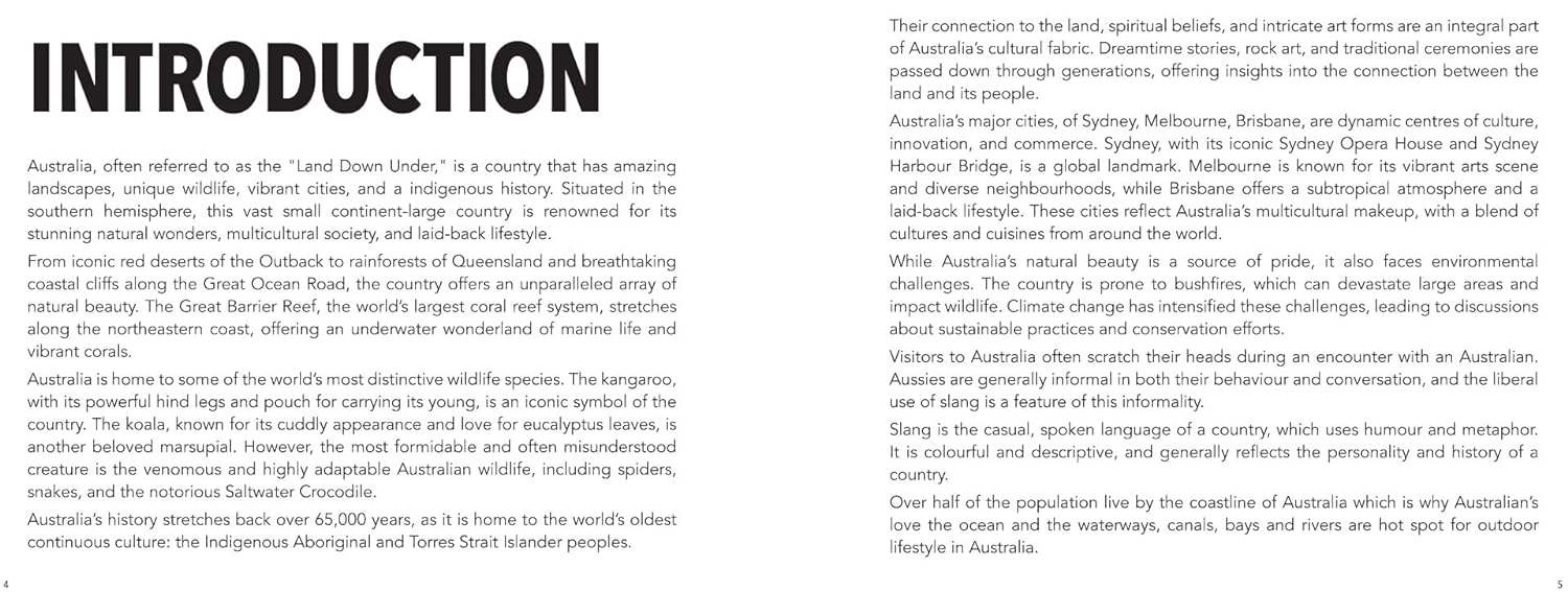 This book covers our fascinating outback to our beautiful coastlines, glorious beaches and rugged landscapes along with our majestic islands that makes Australia a country so unique.