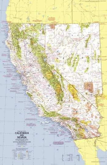 Close-up USA, California and Nevada (1974) Vintage Map by National Geographic