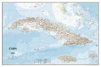 Cuba's many offshore islands, reefs, and rivers are noted, as are sites of interest including national parks, mountains, swamps, and coastal reefs. Ocean bathymetry, peak elevations, and handcrafted shaded relief provide topographical detail. Jamaica, the Cayman Islands, the Florida Keys, and most of the Bahamas and Haiti are shown, presenting Cuba in the context of its ...