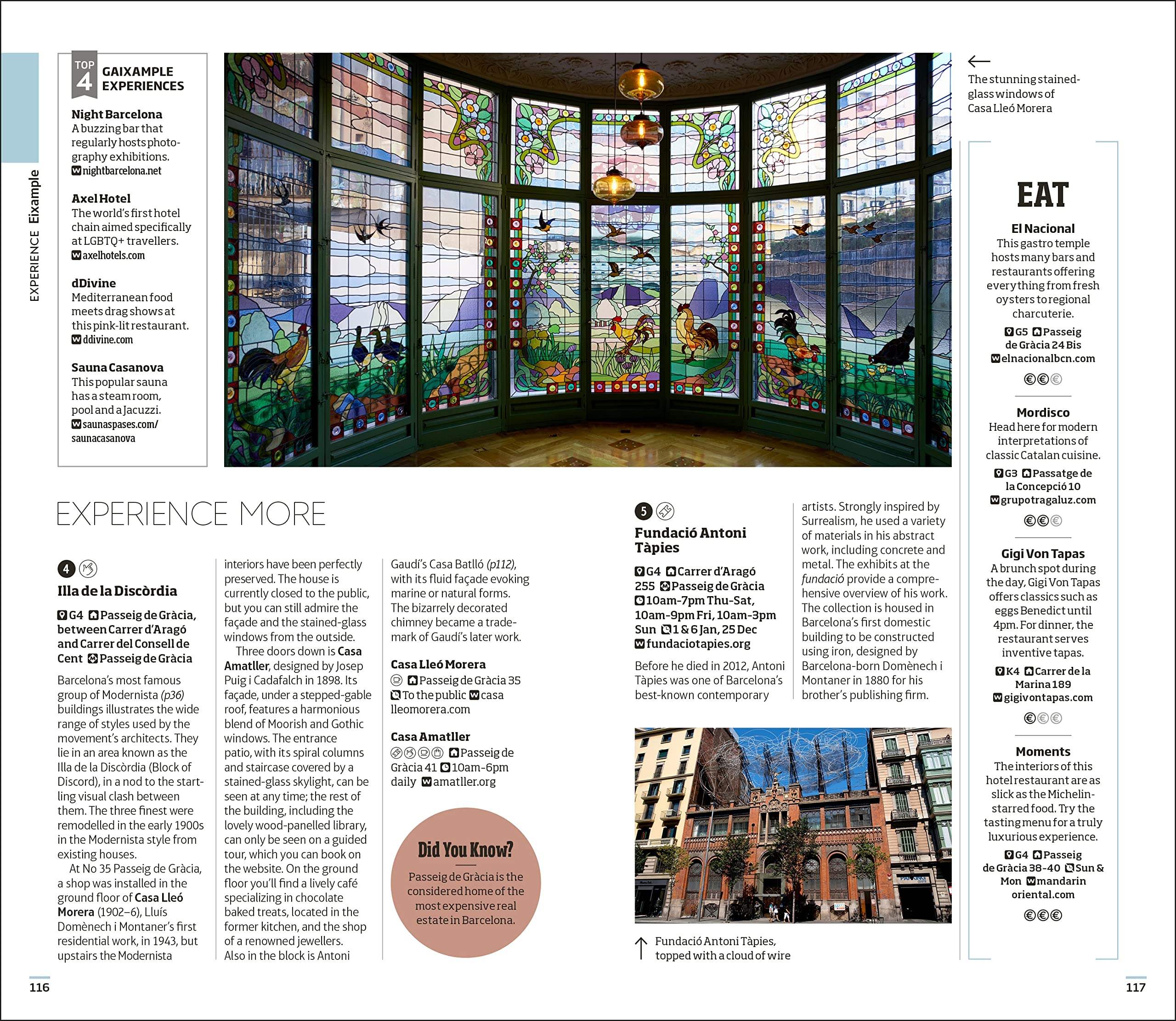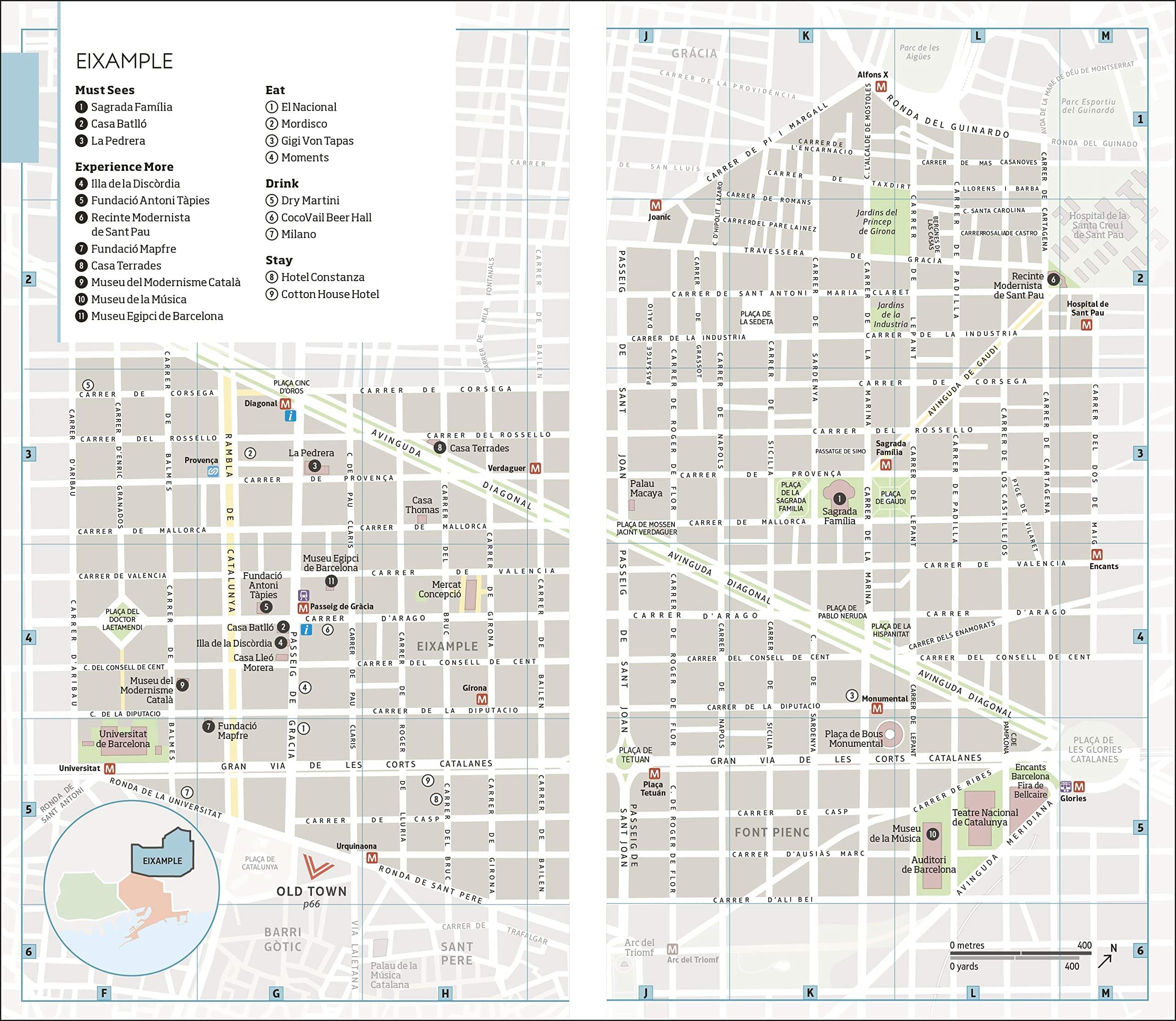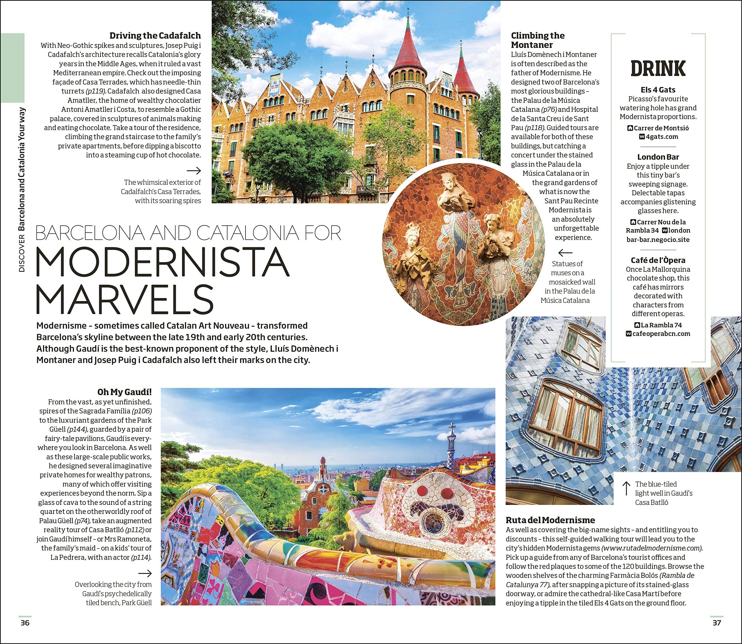 – Color-coded chapters to every part of Barcelona and Catalonia, from Old Town to Eixample, Montjuïc to beyond Barcelona