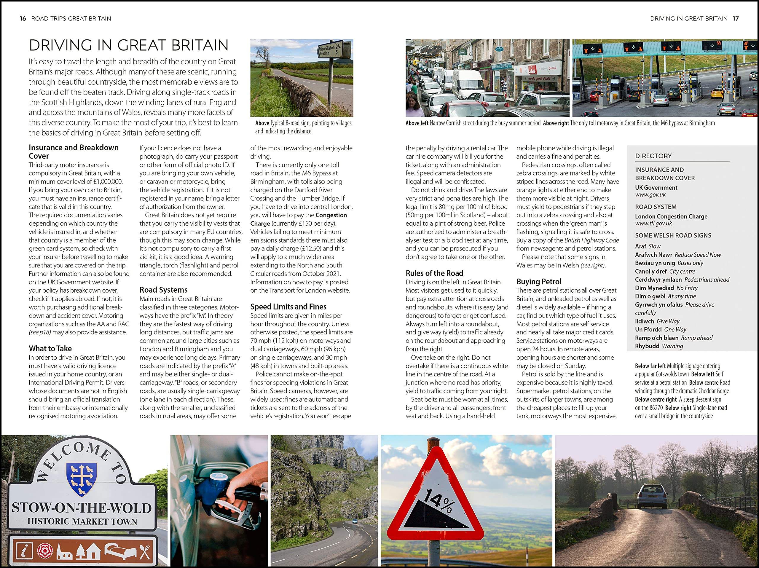 A laminated pull-out road map of Great Britain helps you navigate with ease