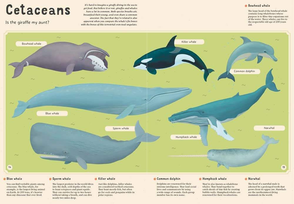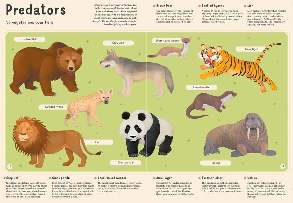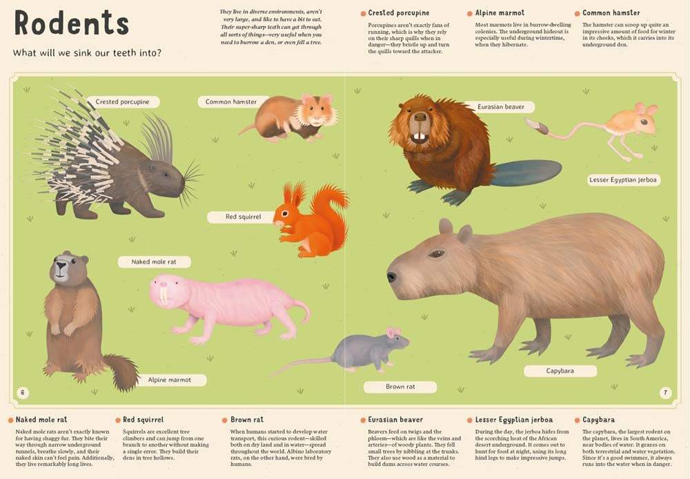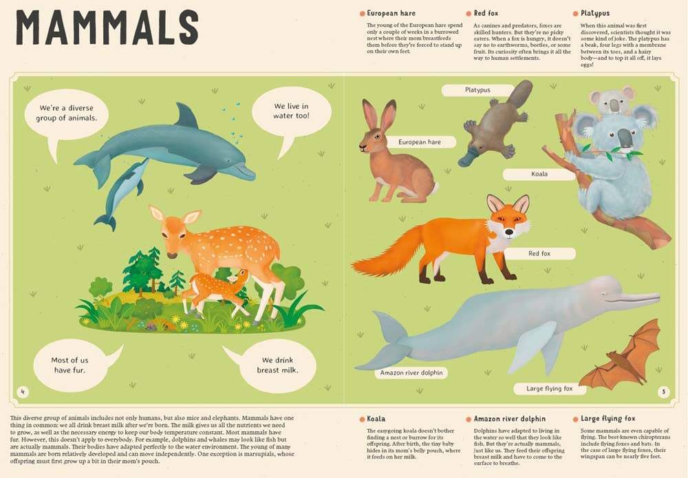 Vast numbers of animals live here on Earth, from tiny insects to large mammals. The animal world is varied and quite interesting. This encyclopedia will introduce you to several hundreds of the best known and most interesting animals on the whole planet, and to top it off , it will help you put each one of them into the right group. This book will show you an attractive selection of mammals, rodents, ungulates, primates, predators, cetaceans, birds, fish, cartilaginous fish, amphibians, reptiles, insects, and other animal groups that can be found all over Earth. Beautiful illustrations and simple texts make this book indispensable for all children.
