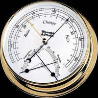 Utilizing the largest dial size of the Endurance collection, the brass 145 Barometer & Comfortmeter combines a barometer with a thermometer and hygrometer in one instrument that is easy to read. The comfortmeter portion of the dial measures temperature and humidity while the barometer displays barometric pressure.