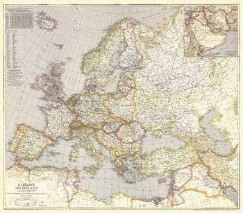 Published in June 1943, this map of Europe and the Near East features distances from European ports to other world ports. An inset of the Middle East provides detail of the Asian countries adjacent to Europe.
