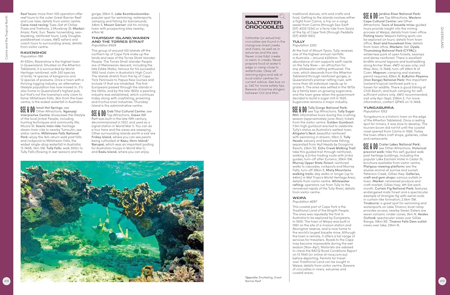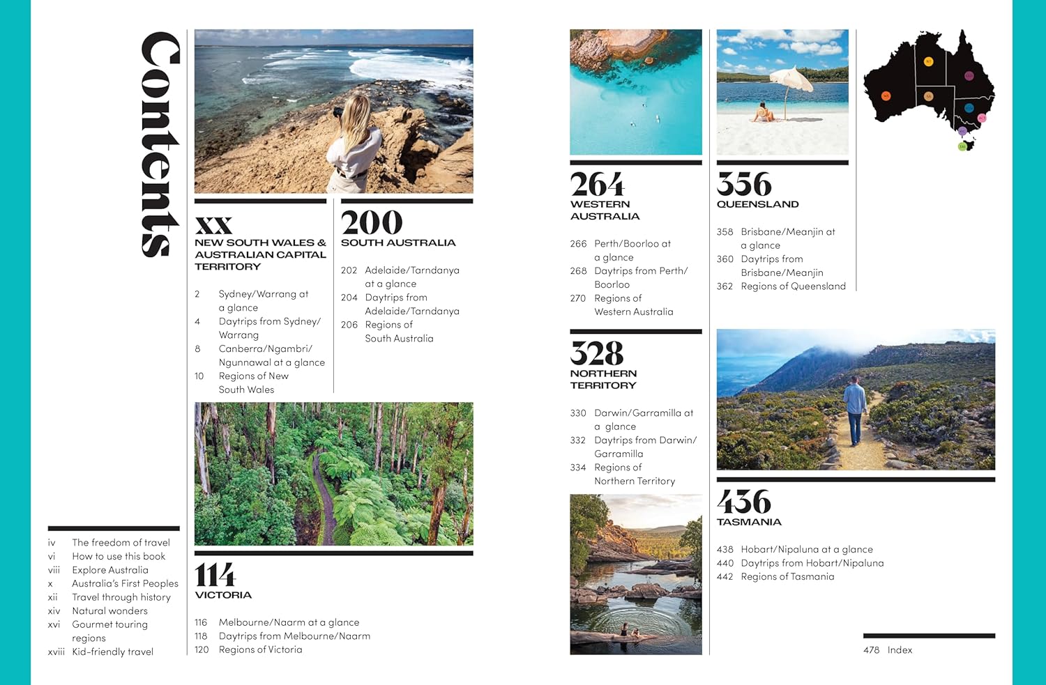 This comprehensive guidebook makes planning your next trip easy. Including entries for more than 700 towns and cities from across country, all divided into major holiday region entries that include a destination overview, a handy map, summary of top attractions, major festivals and events, alongside photos showcasing featured places. A huge variety of nature and cultural experiences are covered, from waterfalls and bushwalks to museums and wineries. There’s also information on Traditional Owners and many places feature First Nations cultural experiences or describe sacred sites. All of the information in this edition has been checked and updated.