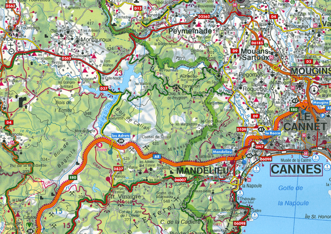 This map includes detailed land information of the French Riviera area, and also insets of major towns including Nice, Toulon, Cannes, Monte Carlo and more. Also included is a booklet of top tips of what to do and see when visiting there.