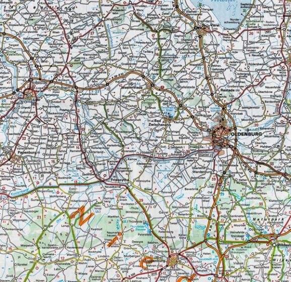 Part of the orange regional series from Michelin, this Germany Northwest map shows this part of Germany in excellent detail. Primary & secondary road networks are clearly marked out with indications of the number of lanes, intermediate distances and various possible road obstacles or things you should know including steep hills, height limits, toll barriers, prohibited roads and roads subject to restrictions.
