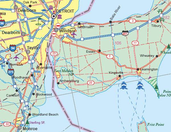 The map divides the region east/west with a small overlap between the sides and is orientated with the north-west at the top to provide coverage of this large region at a good scale, extending on the Canadian side to Ottawa in the east and in the US south to Columbus in Ohio on ...