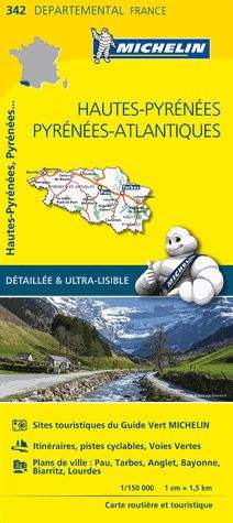 From Michelin's yellow Departements France series comes this map of the Hautes-Pyrenees, Pyrenees-Atlantiques department in France, at 1:150 000 it shows excellent detail of this area. The map has the usual brilliant road detail, characteristic of Michelin maps, with everything from motorways down to rough tracks and footpaths marked out clearly. The number of lanes is indicated on most roads, with intermediate road distances, European route numbers and tolled roads ...