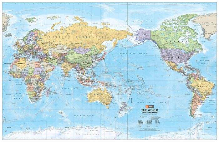 A world political Pacific-centred map with relief shading to accurately depict each country and ocean's topography, and includes the International Date Line. Hema's World map is perfect as either an educational tool, a reference point or for decoration.