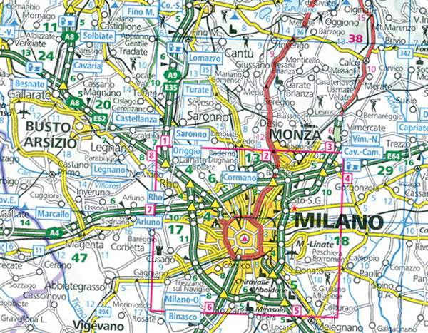 The map also includes city centre maps of Rome, Florence, Turin, Milan, Bologna & Genoa. Very useful when trying to navigate through and around these picturesque but ancient streets.