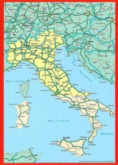 The Italy North map by Hallway is a detailed map of Italy from Rome up to Southern Switzerland / Austria at a scale of 1: 650,000.