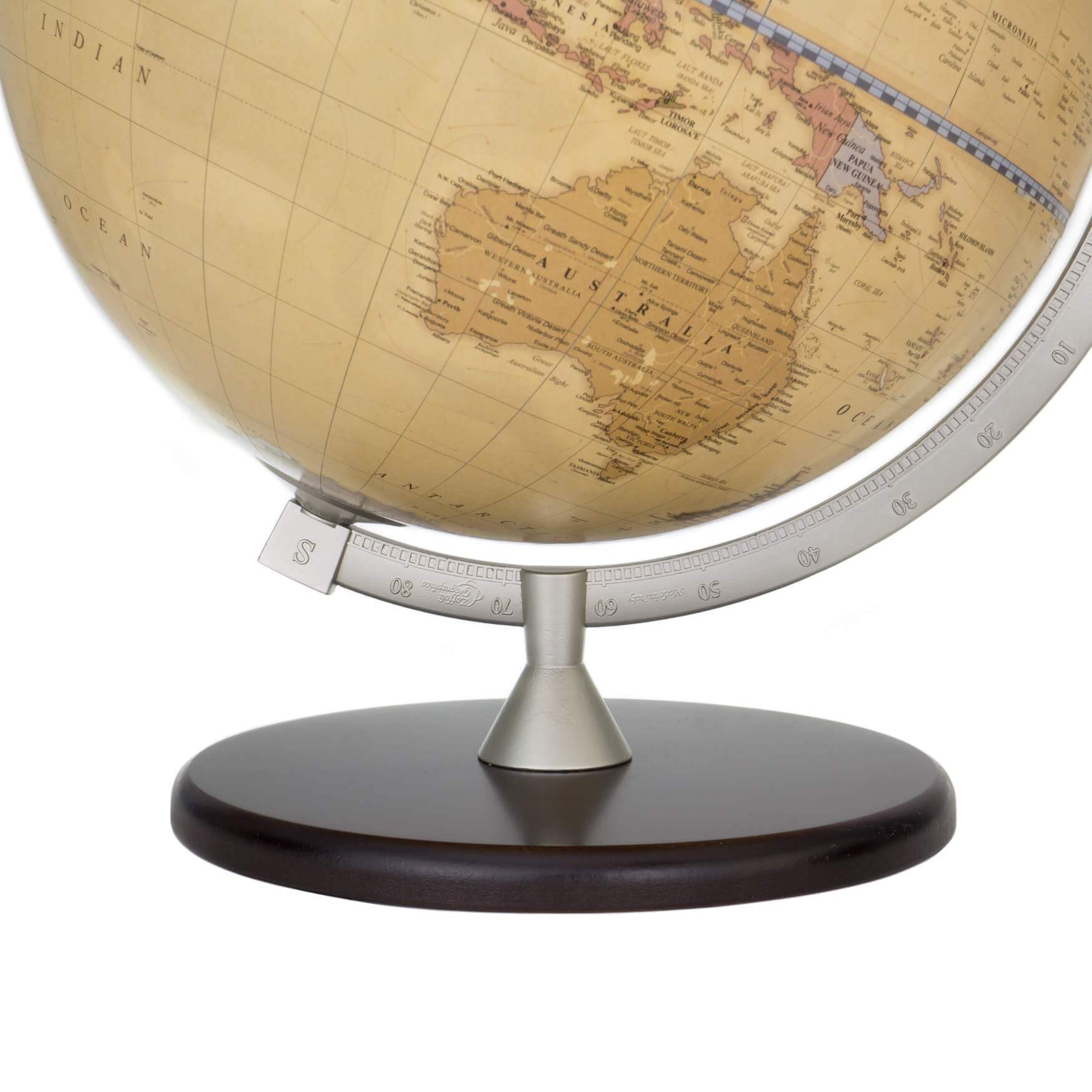 The wooden stand is heavy in comparison to most desk globes and is wide enough for the globe to be very stable. The aluminium meridian is substantial, sturdy and has a high quality finish.