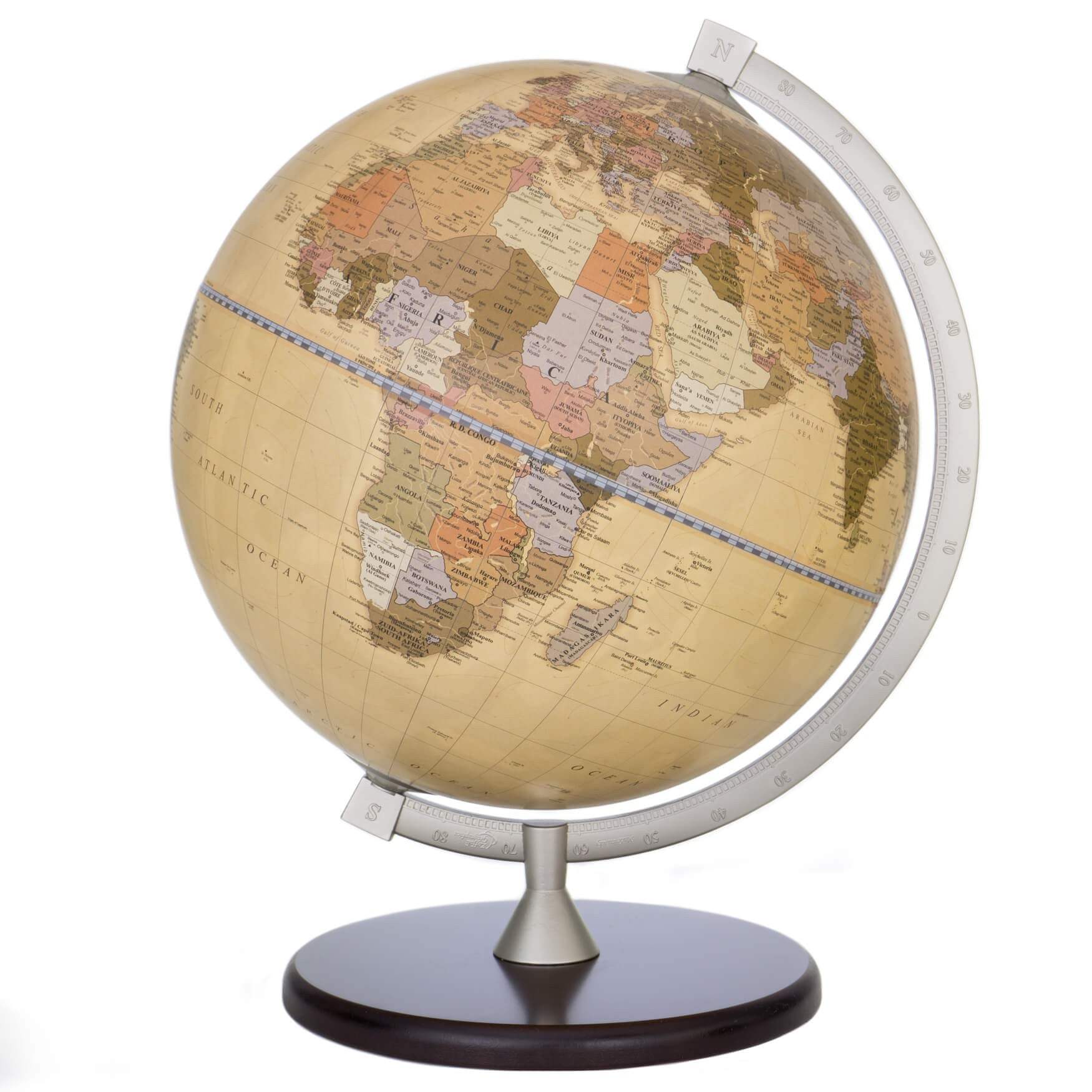 The map is very detailed with major cities, rivers, seas and mountains all included. This globe is one of very few that feature the countries of the world in their own languages as well as in English. The globe ball itself is 13" (33cm) in diameter which is a noticeable size increase compared to 12" models.