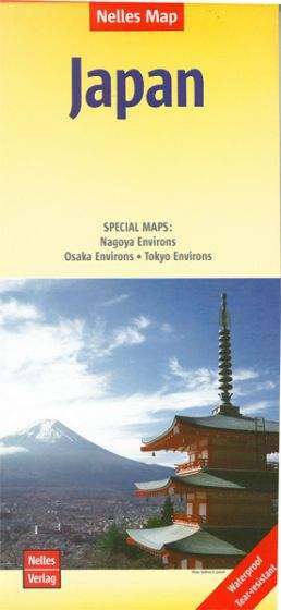 Japan at 1:1,500,000 on a double-sided map from Nelles with a smaller size sheet offering a convenient format for use when travelling. Also included are enlargements showing in greater detail the environs of Tokyo - Yokohama, Osaka