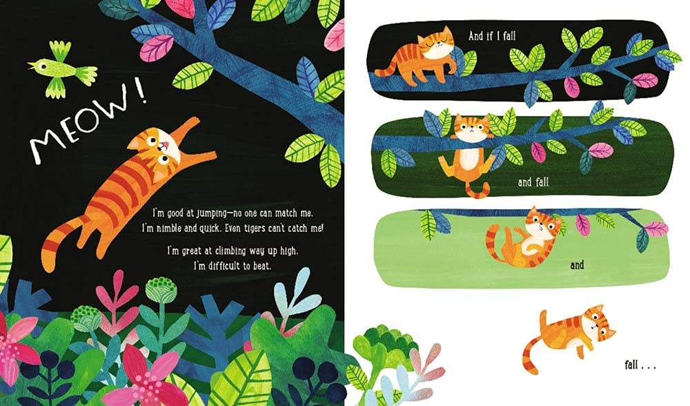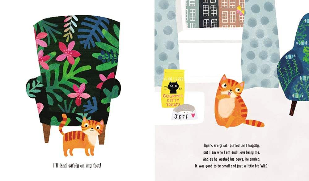 Bursting with vibrant colors and adorable illustrations, this story follows one little cat named Jeff as he imagines himself as a ferocious tiger in the jungle where he can be free from the rules of indoors! Escaping in his imagination to exercise his wild side, Jeff meets other animals in the jungle. With their help, Jeff learns to appreciate himself for who he is: not a tiger, but a little kitty who can be just as wild.