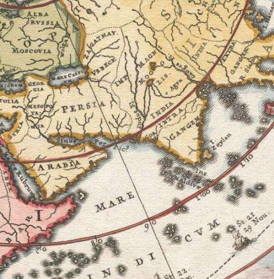 This is a really old and really cool historical map Magellan's world voyage from the year 1700.