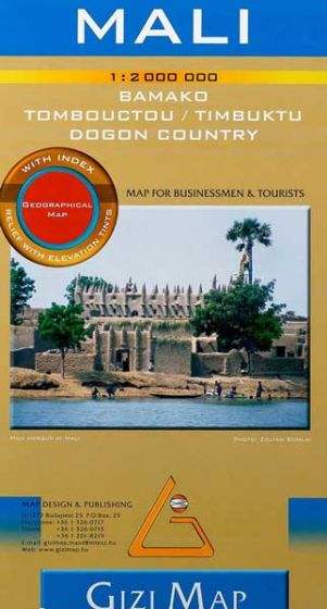 Mali at 1:2,000,000 from Gizi Map with excellent presentation of the country's topography, an enlargement for the Dogon Plateau, street plans of Bamako and Timbuktu, all showing places of interest, plus an extensive index.
