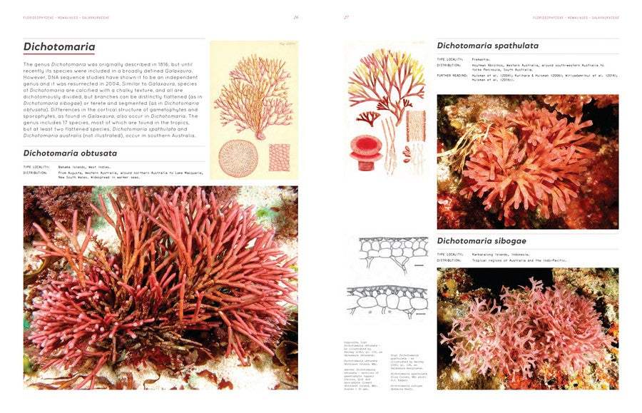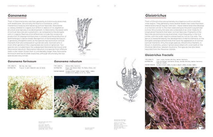 Arguably the first scientifically rigorous “coffee-table” book devoted to a broad region’s seaweed flora. “Scientific” owing to the accuracy and detail of its descriptions, “coffee-table” because of its large format and wealth of beautiful drawings along with underwater photographs of species taken in their natural habitats.