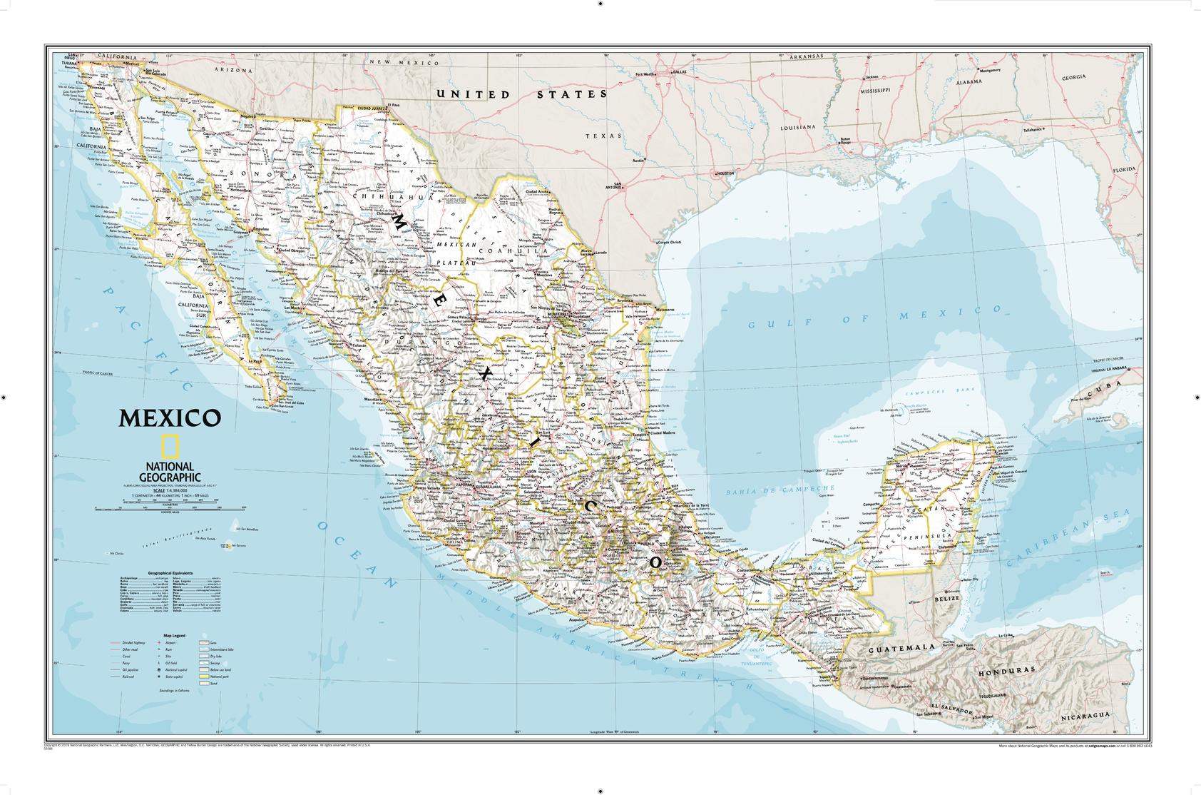 This finely detailed political map of Mexico shows country boundaries, cities and towns, airports, major highways and roads, and bodies of water. Shaded relief shows the country's terrain.