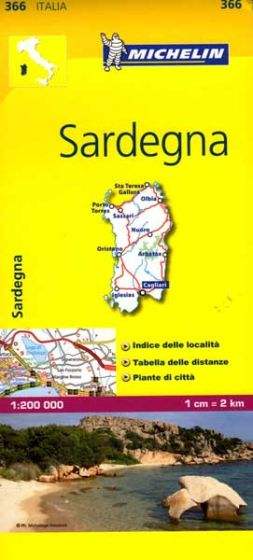 The map also has a table gving distances and driving times between major towns and citites throughout the region and an extensive index of places. There's also a number of inset maps of various towns and regions, namely Cagliari, Sassari and Olbia.