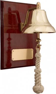 This 6" brass bell mounted on a high gloss mahogany finish presentation plaque is a distinctive way to acknowledge accomplishment in any field of endeavor.