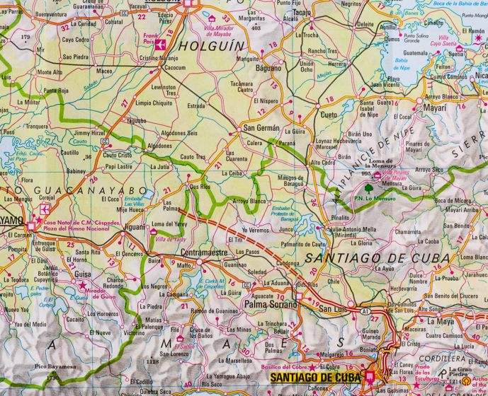 Waterproof and tear resistant double sided road map of Cuba.Inset maps of: