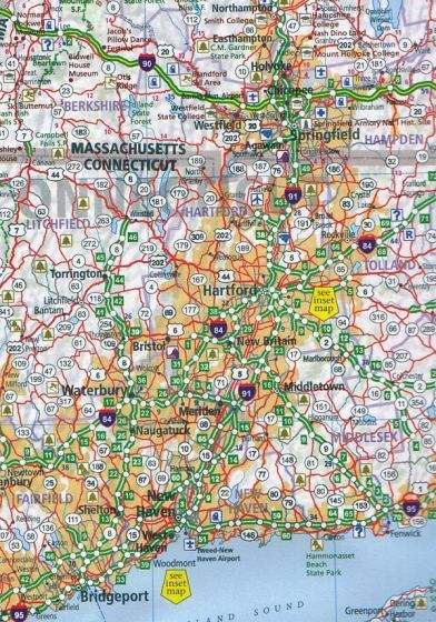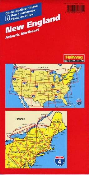 This New England Map by Hallwag is a wonderfully detailed map of the Atlantic Northeast of the United States - ideal for trips from Washington D.C. up to Maine, as well as trips across to Quebec, Montreal, Ottawa, Toronto and Niagara Falls.