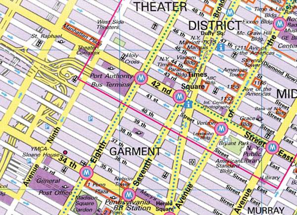 This map of New York City has an at-a-glance graphic layout, practical to use and easy to fold.