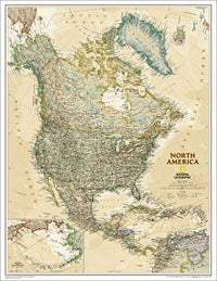 This richly coloured map of North America - featuring country boundaries, place names, major highways and roads, and bodies of water - is excellent for reference in your home or office. An inset map shows the Aleutian Islands off the coast of Alaska.