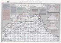 Pilot charts depict in some detail the prevailing weather patterns including: wind directions and speeds, wave heights, ocean currents, visibility, barometric pressures, sea ...