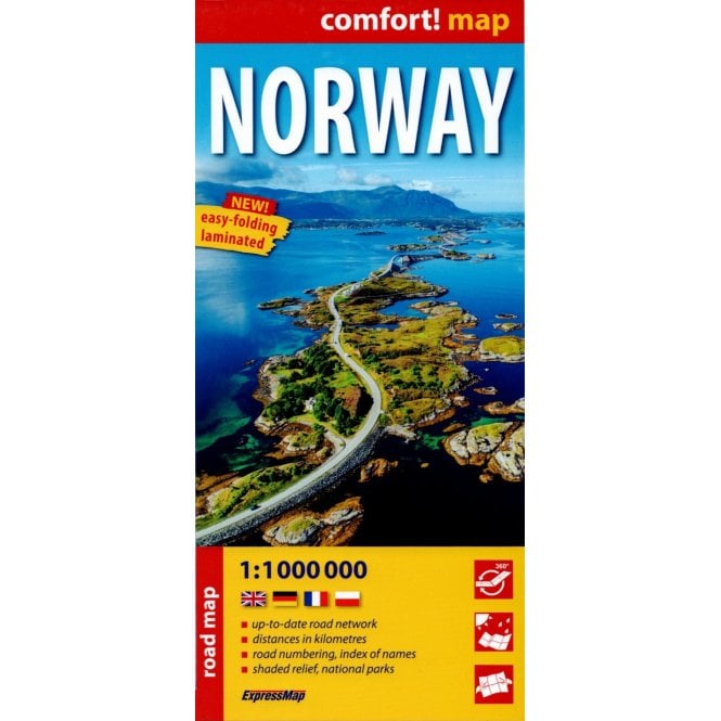 Dignified mountain peaks, fishing villages, impressive glaciers and wild fjords. Ride through the Trolls' Way winding through the hairpin bends. With our double-sided laminated, foldable and durable map of Norway, a car trip around this country will be a real pleasure.
