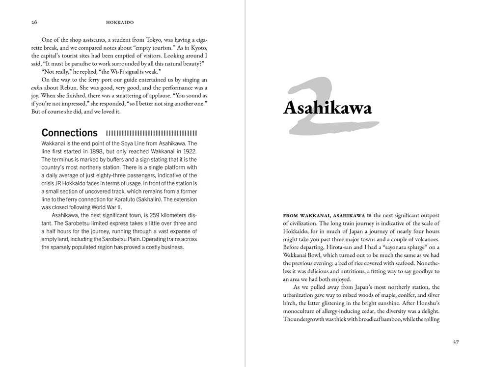 Mixing comments on landscape and culture, the author was inspired by Alan Booth and Donald Richie and brings a contemporary perspective to his writing. The text provides some practical information on travel by rail and railway lines, but goes into far more depth and personal observation than a conventional guidebook for tourists.