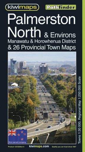 Palmerston North region in a series of maps covering various districts of New Zealand, with each title combining a detailed road map with street plans of local towns, all with road and street indexes. The maps are published in two formats: handy Pocket Maps or Pathfinders with, as the publishers put it