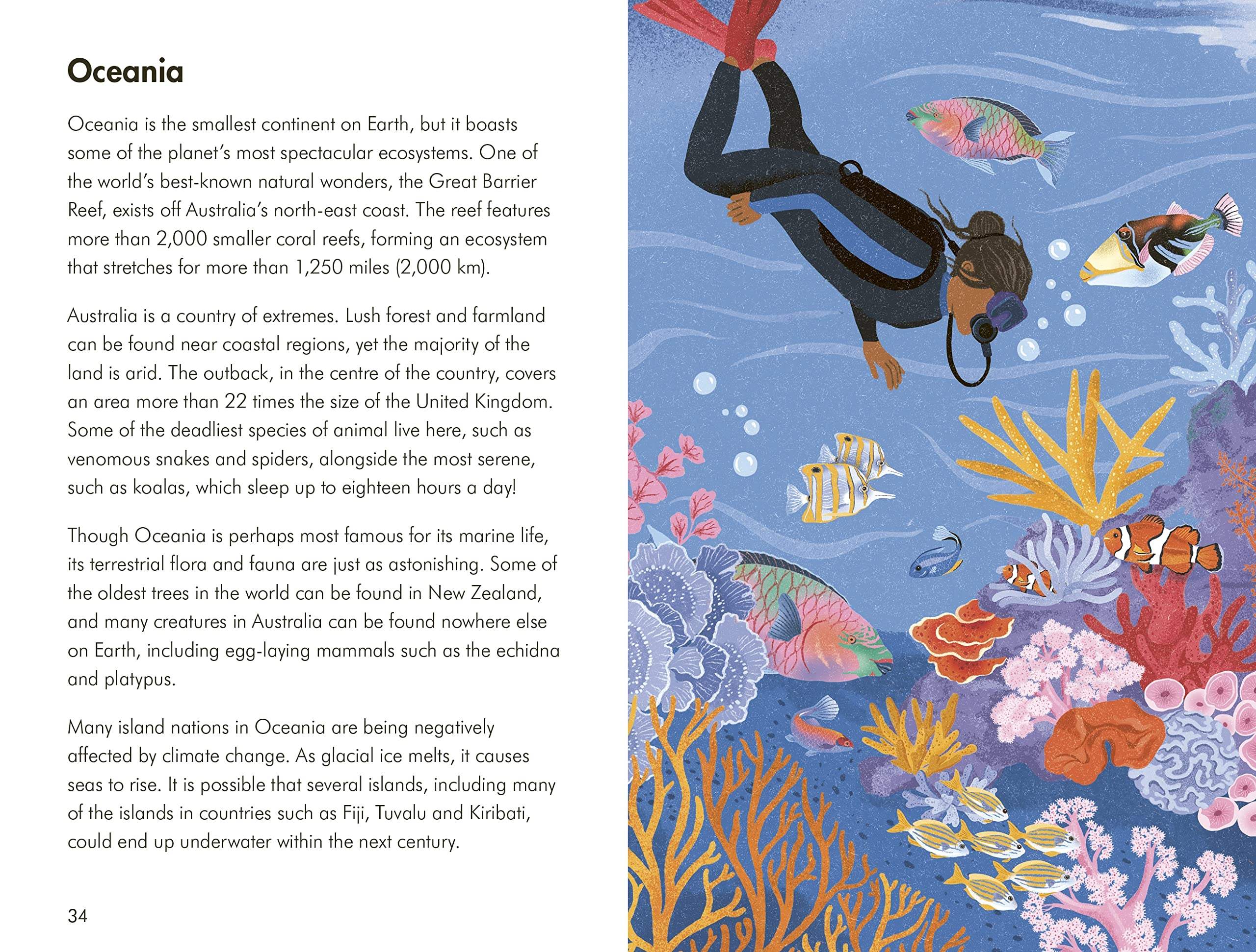 Our planet has existed for 4.54 billion years. Its oceans for roughly 3.8 billion years. And the first life appeared approximately 3.77 billion years ago. There are thought to be more than 8 million species on Earth, and we're still the only planet with life (that we know of!).Readers can explore every facet of Earth in this informative guide to geography for curious kids.
