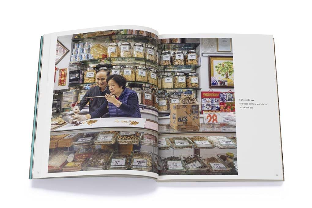 Against a background of Hong Kong’s bustling dried goods trade, dusty shelves groaning with traditional products, the beloved cats either stand out as shop mascots or magically melt away behind boxes and jars. Meanwhile, their innermost thoughts, delivered deadpan, are revealed through Ian Row’s intuitive haiku and stories.