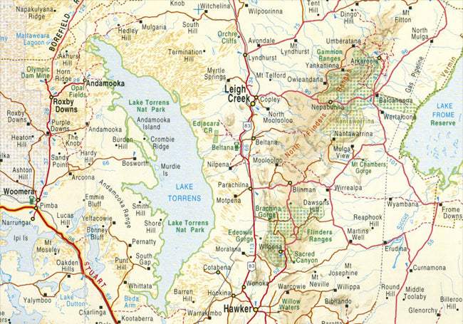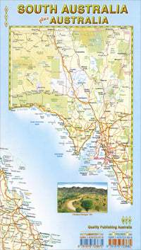 This compact double sided map of South Australia covers the whole state on one side at 1:3 200 000, the other side shows all of Australia at 1:7 500 000.